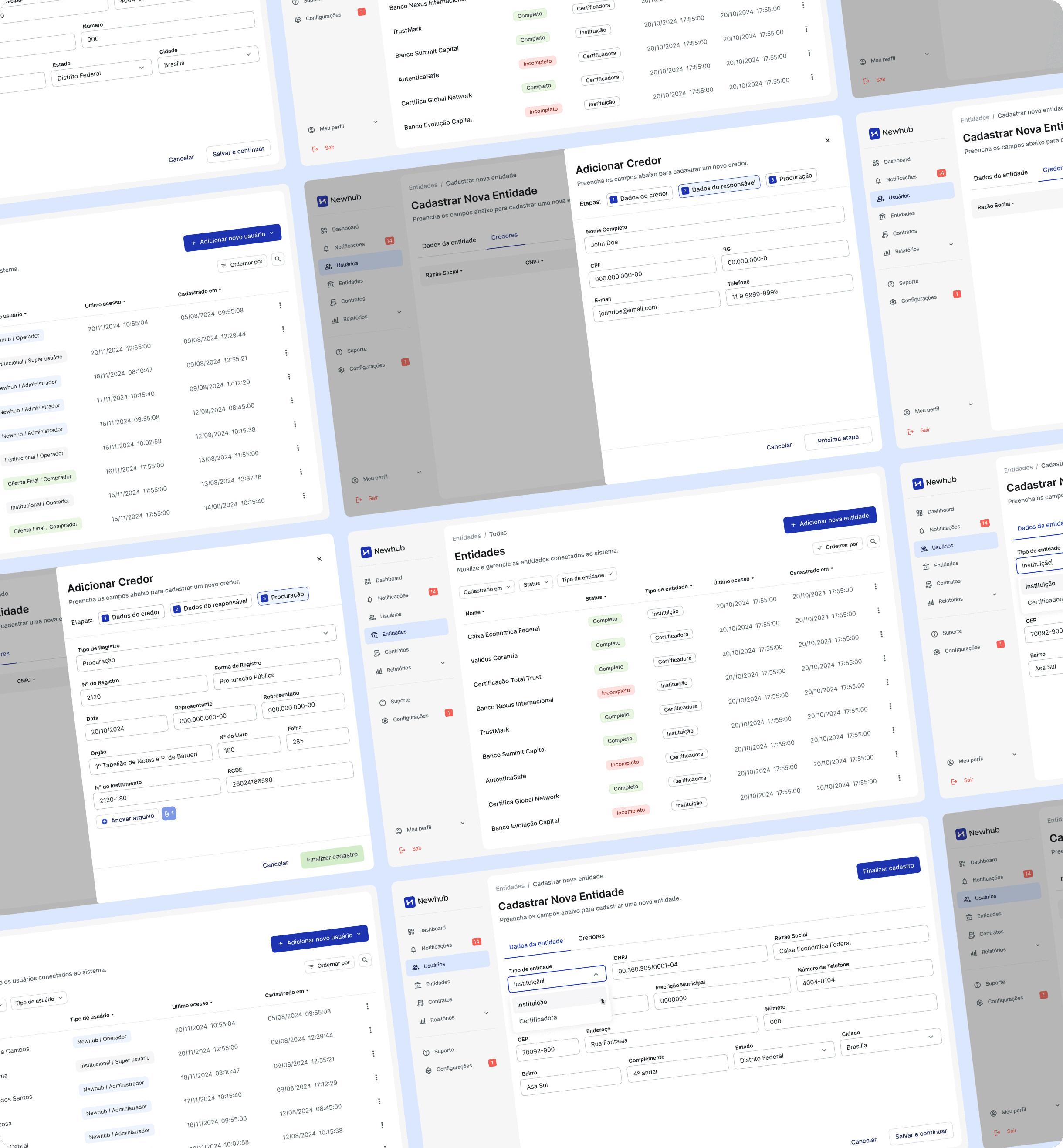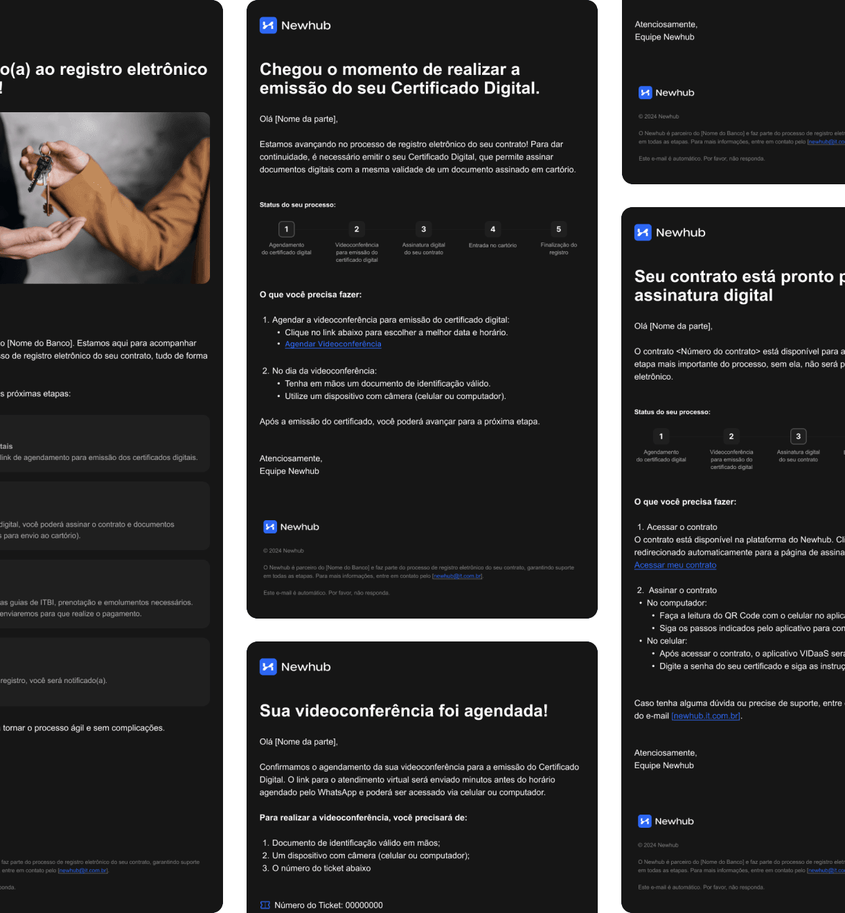 Newhub was developed as a centralized platform tailored to the specific needs of users such as Caixa Econômica Federal, end clients, and support teams. The platform addresses issues such as regulatory compliance, security, and the need for more efficient contract management processes. Key goals were: